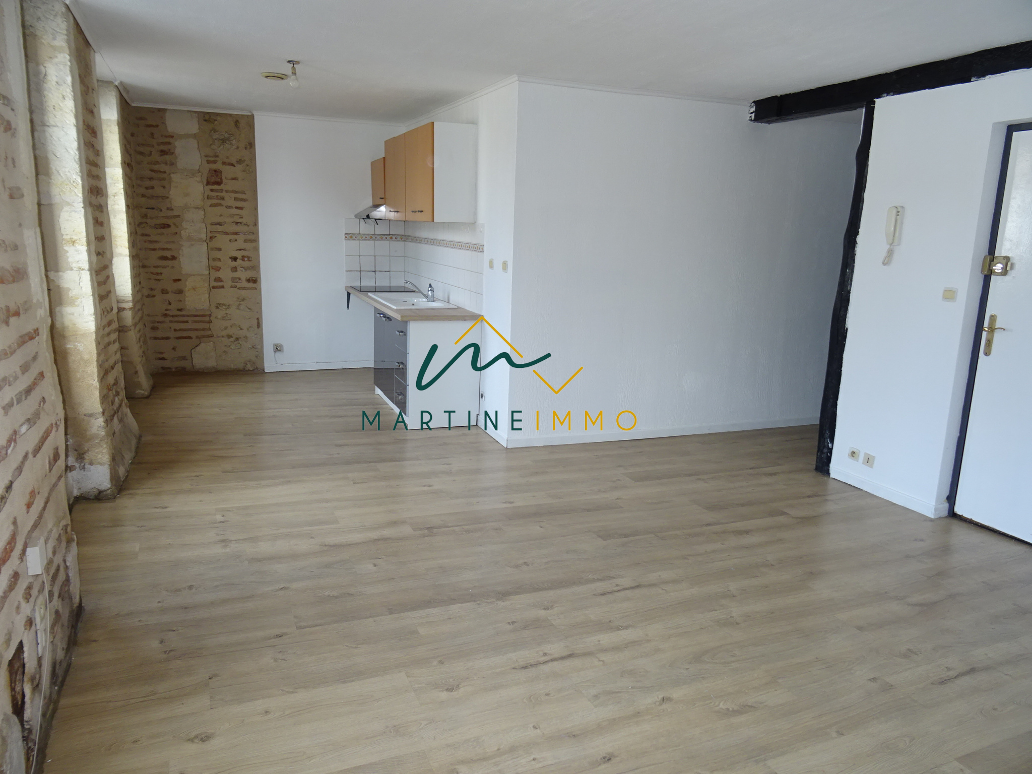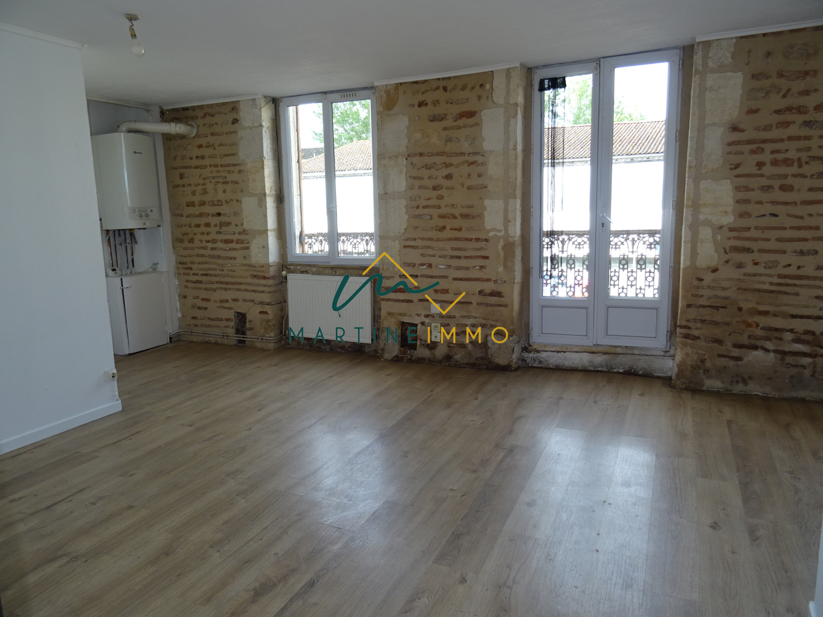 Appartement T3 au premier étage situé proche du centre ville de MARMANDE. Ce logement se compose d'un grand séjour, une cuisine ouverte semi équipée (plaque de cuisson et hotte aspirante ), deux chambres, une salle bain et un WC. Double vitrage et chauffage gaz de ville.