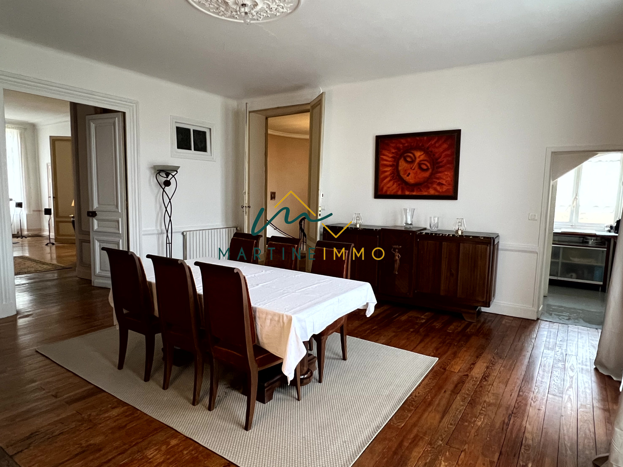 Beaux volumes pour cette maison de maître située au coeur de la ville de Marmande. Allier activité professionnelle, chambres et/ou table d'hôtes, maison d'habitation, elle vous réserve multiple possibilité. Bien que pouvant servir d'habitation, le RDC a déjà etait conçu pour une activité professionnelle (salle d'attente, cabinet, ...) . Les 200 m² du premier étage vous offre, salon, salle à manger, cuisine, 4 chambres, une SDB, salle d'eau, 2 WC. Il vous manque de la place? Qu'à cela ne tienne, les 220 m² du deuxième étage sont aménageables. Une visite vous fera apprécier les volumes, le charisme de cette maison et toutes ses possibilités. Honoraire charge vendeur